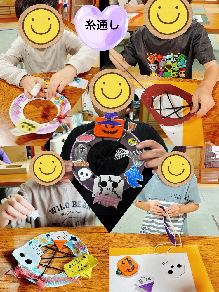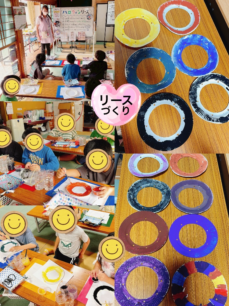 今月の壁面制作は、「ハロウィンリース」づくりを行いました。個性豊かなリースの作品が玄関を華やかにしてくれてます♡