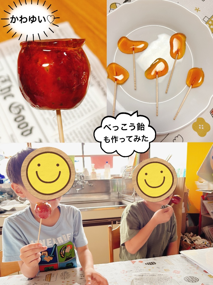 七夕の屋台を思いださせる一品🤭りんごが甘酸っぱく、コーティングされた飴がパリパリで甘くて☝️2つの味が相まってとっても美味しかったです♡