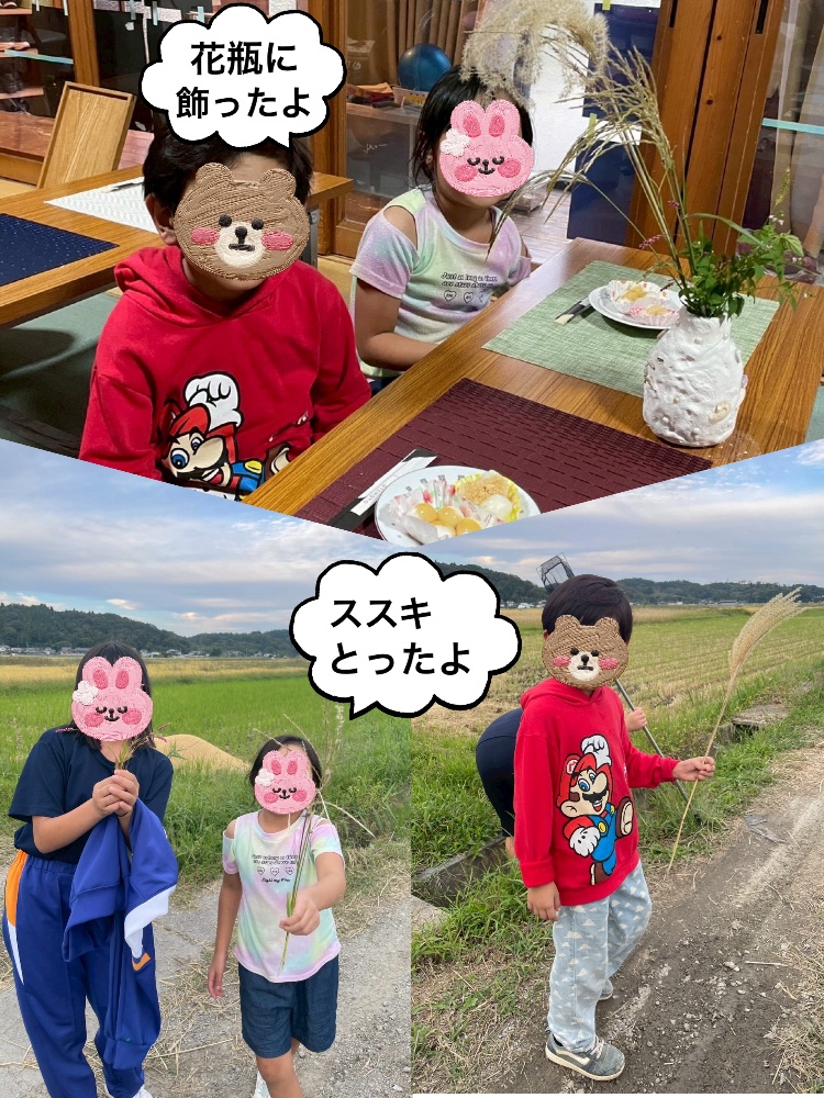 お団子が茹で上がるまでお散歩して、ススキとお花を摘むお友だち♡花瓶に素敵に生けてくれました♡秋を感じますね🍂