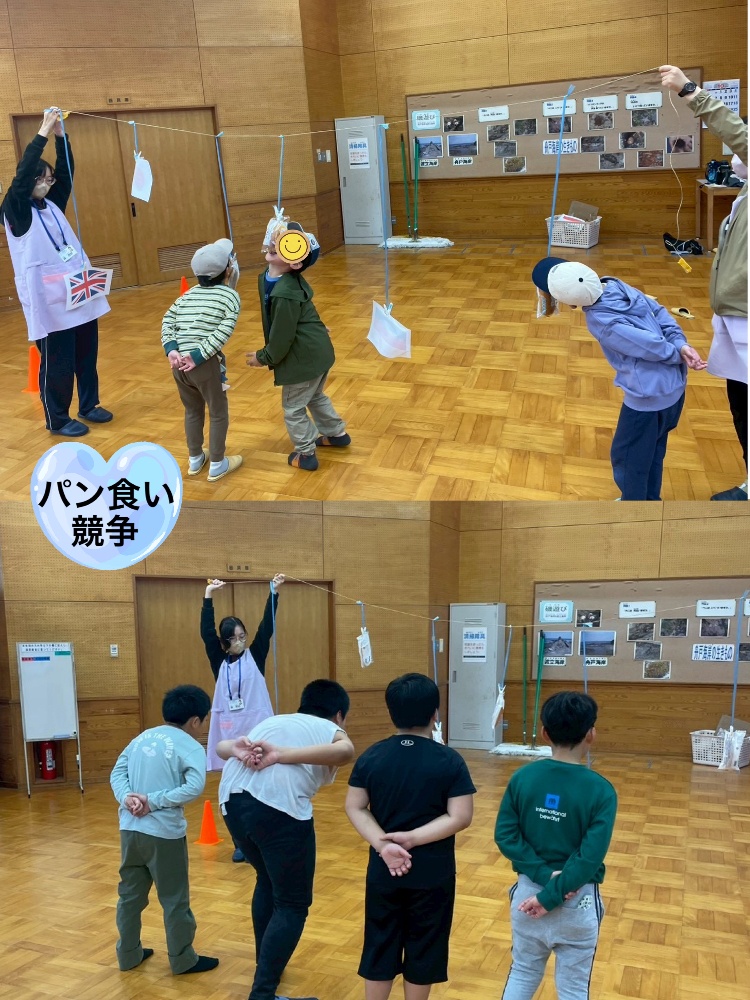 手を使わずにパンを口で取る!なかなか難しい競技に悪戦苦闘しながら最後まで諦める事なくチャレンジいたしました😊
