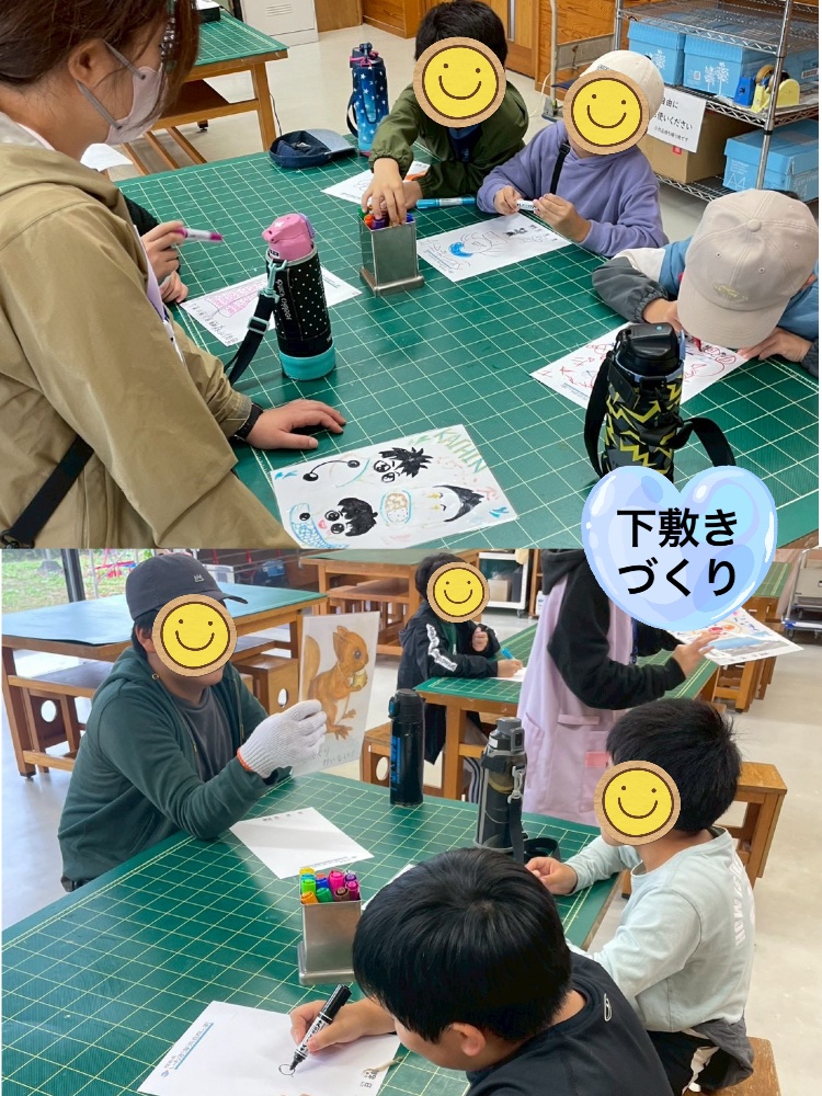 後半は場所を変え、下敷きづくりを行いました。好きな絵を自由に描く活動♡