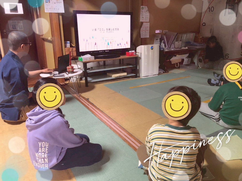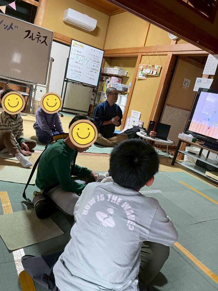 午後からは、住職 早川様による「マインドフルネス」体験。感情のコントロール、集中力向上、自己肯定感の育成に役立ちます。また、自分なりにリラックスする方法を身につけよう☝️ということで、