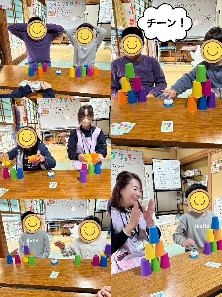 カードと同じに積み重ねできたらベルを鳴らす「チーン」!低学年のお友だちができるのは待ってあげる優しさがみられホッコリしたしました😊