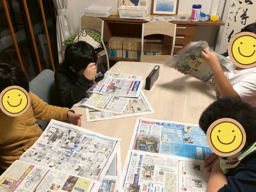 こども新聞は分かりやすいフォントで見出しや写真が掲載されており、各々の興味関心のある記事を読んでおりました。