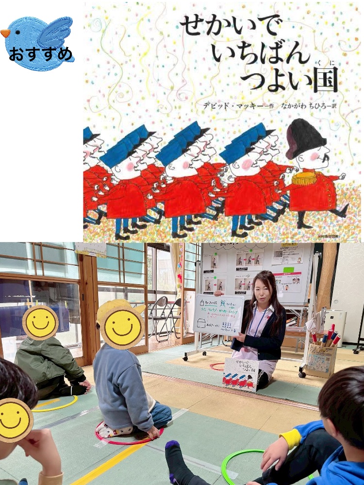 「世界で1番強い国」世界情勢を見て数年前に息子に購入した本です。以前ニュースでも取り上げられていました。世界中を征服すれば強く幸せな国になれるという大統領の野望。最後に征服しようとしたある国は兵隊がいなくて武器もありません。むしろこちらの兵隊たちをお客のように歓迎してくれるのです。たくさん話し、笑い、美味しいものを食べ…そんな当たり前のようで当たり前でないことをできる国でした。そこで兵隊たちは打ち解け…一度は兵隊に怒った大統領も本当の強い国は何か改めて考えさせられる本。
