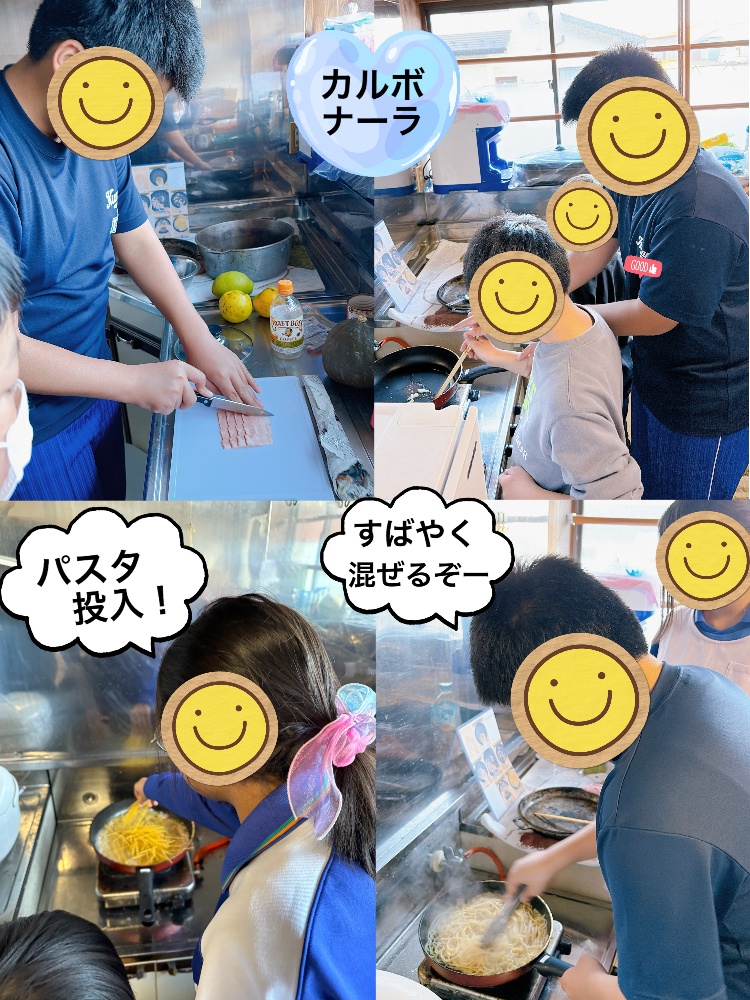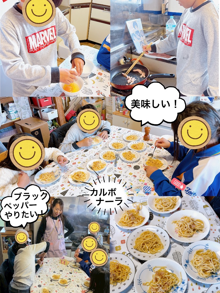 こちらは金曜日⭐︎余っていた材料でまたカルボナーラづくり🤭メンバーが違うので本日は四年生の男子を中心に調理♪ブラックペッパーのミルにみんなハマってぐるぐる回してかけておりました♡ ピリッとした強い辛みが好きな子多いんですね♡