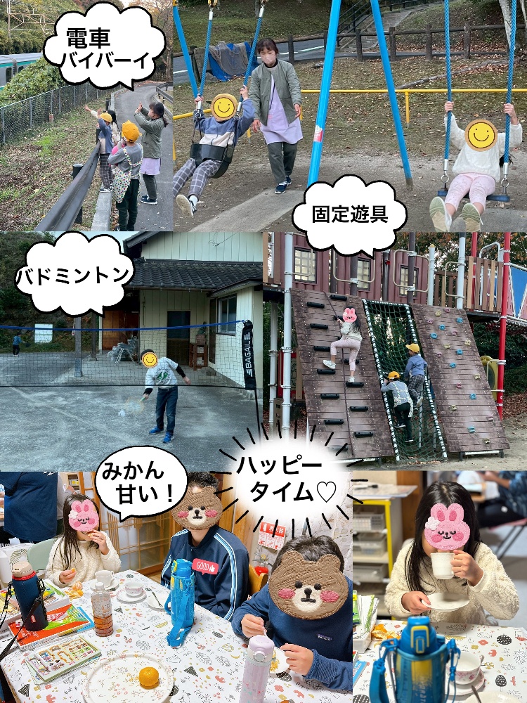 それぞれグループに分かれ戸外活動を♡夕方は寒くなってきましたね。戻ってきてからは、みかんとあったかい紅茶をいただきホッとしたハッピータイムを満喫いたしました🤗