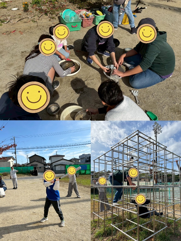 感覚あそびでは、石ふるいを使い微細な砂と石を選別し、水を入れて泥団子づくりをしました♡ 五感の刺激、泥と水の配合による感触の変化に気づき、試行錯誤しながら完成させるプロセスを通じて、達成感や自己肯定感を育み、指先の器用さや集中力も養う素敵な活動😊
