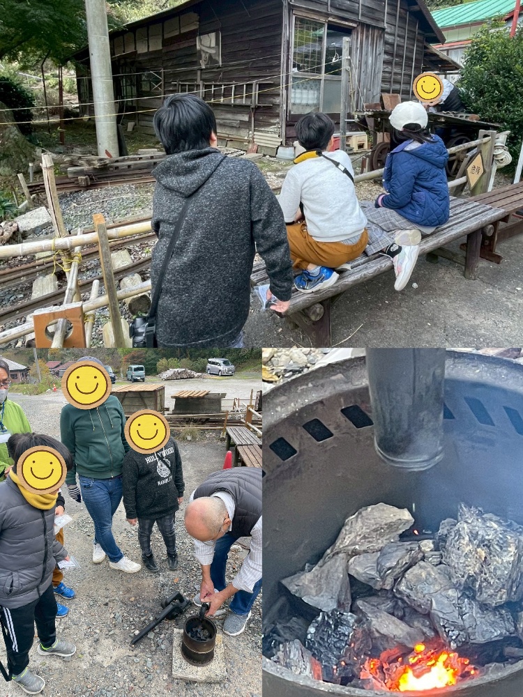 当日使われていた物と同じトロッコを動かして、出発・緊急時の汽笛のリズムの使い分けなどを実際にやって見せていただく体験学習😊お土産には石炭をいただき子どもたち大喜びでした。