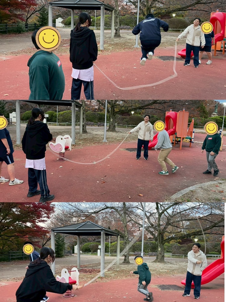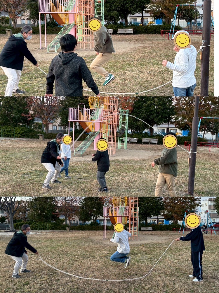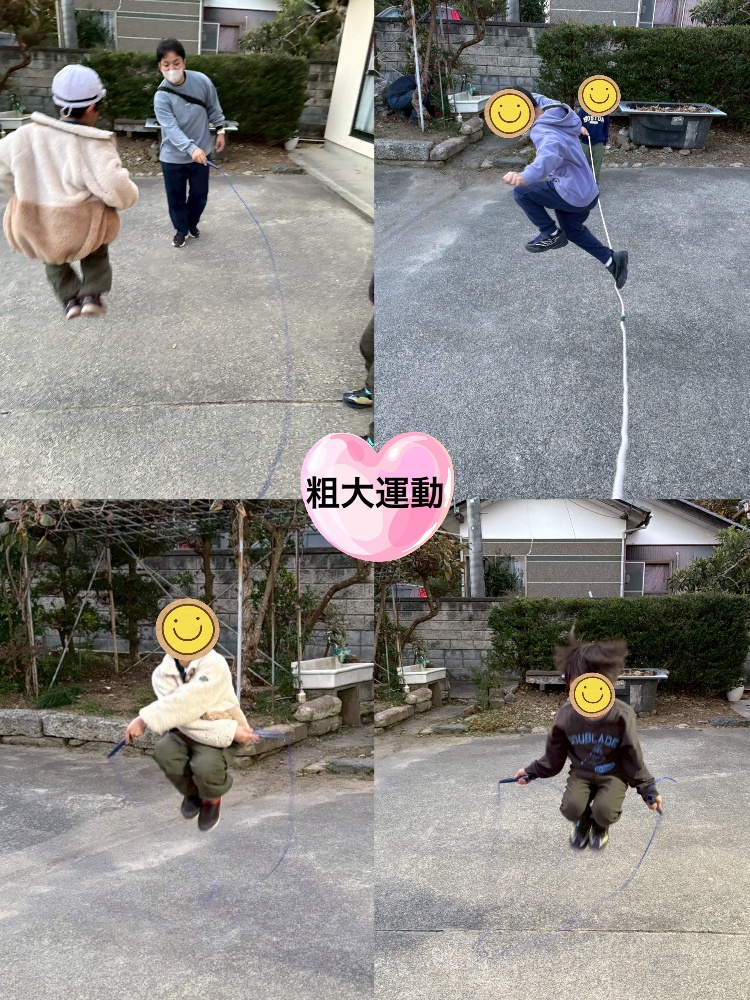 粗大運動として、ジャンプやリズム感、瞬発力を養う全身運動「長縄跳び」活動を行いました🎵
