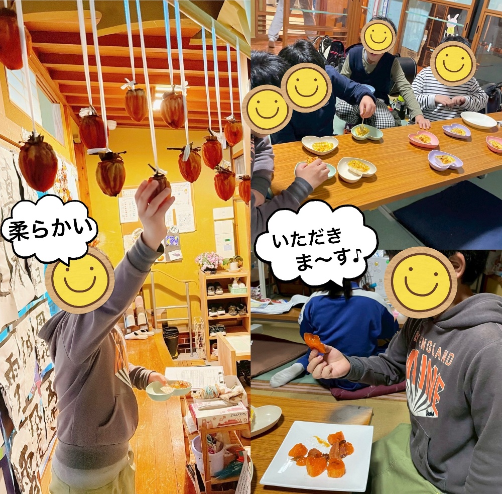 戻ってからは焼き上がった「スイートポテト」をいただきました😊「干し柿たべたい!」とリクエストがあり干し柿もいただきました。昔ながらの体に良いおやつ♡癒しの時間をみんなで共有いたしました。