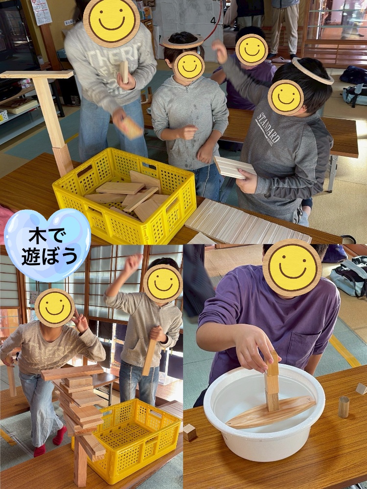 最後に、木材屋さんからいただいた廃材を利用し木と遊ぶ活動を♪ゲームなどのデジタル機器が主流な現代ですが、身近にある木と触れ合い、遊び方を考えたり、お友だちとコミュニケーションをとったり、アナログ遊びはコンピュータを使わず人対人により心を育みます♡木育で育みたいのは「心」です😊そんな時間も少しずつ増やしていければと思います♡