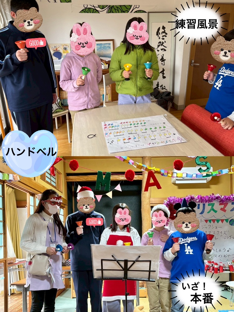 子どもたちの余興では、高学年を中心に昼休みにハンドベルを練習し、「ジングルベル」をみんなの前で披露♪さすが堂々とした振る舞い👏息を合わせた演奏、大変素晴らしかったです😊