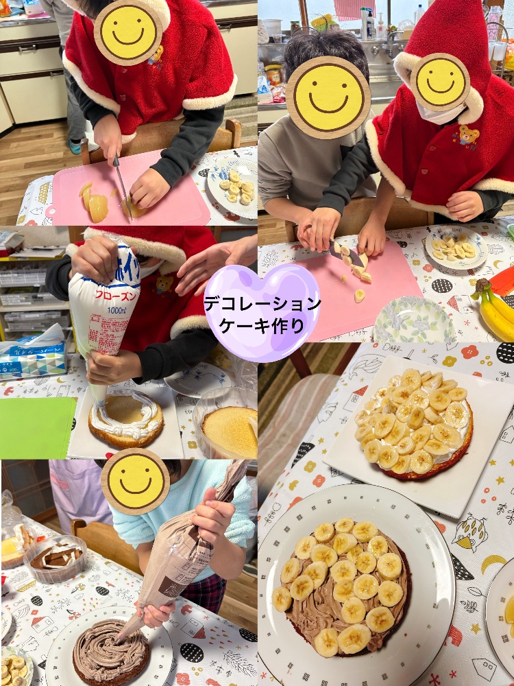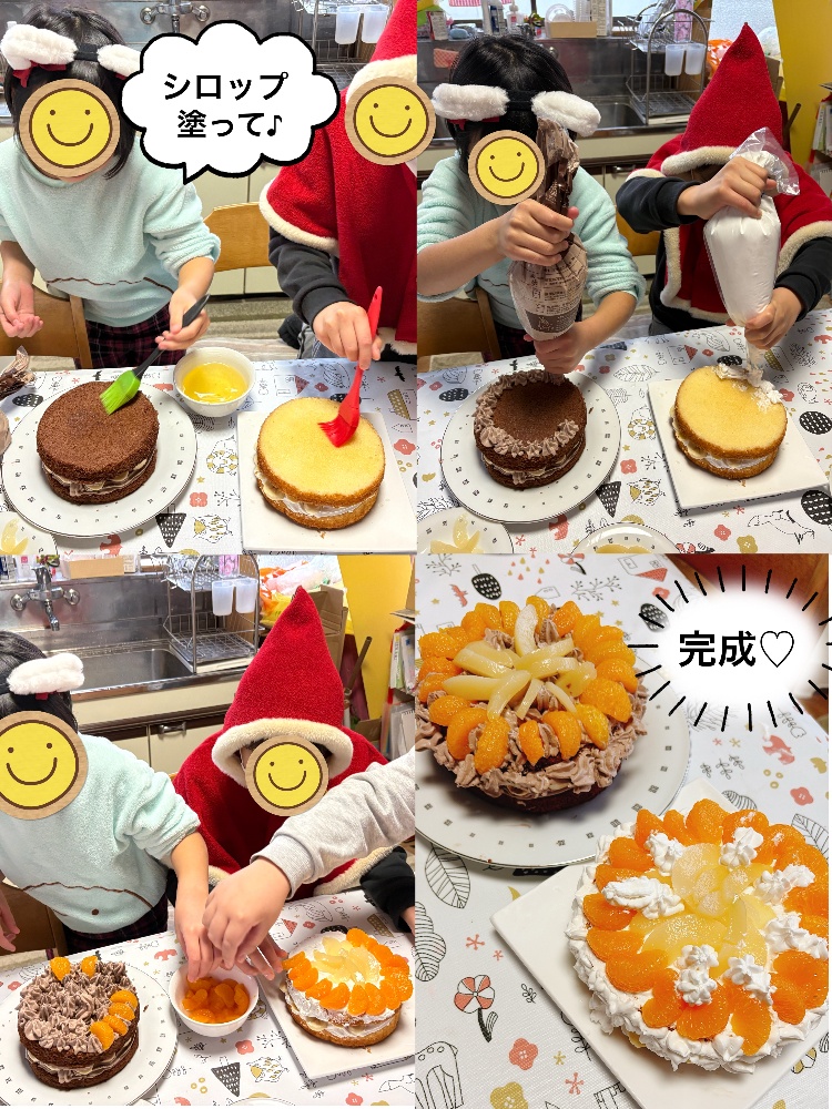 さて、本日12/25生まれのおめでたいお友だちの誕生日会にちなんで、「デコレーションケーキ」づくりを行いました😊