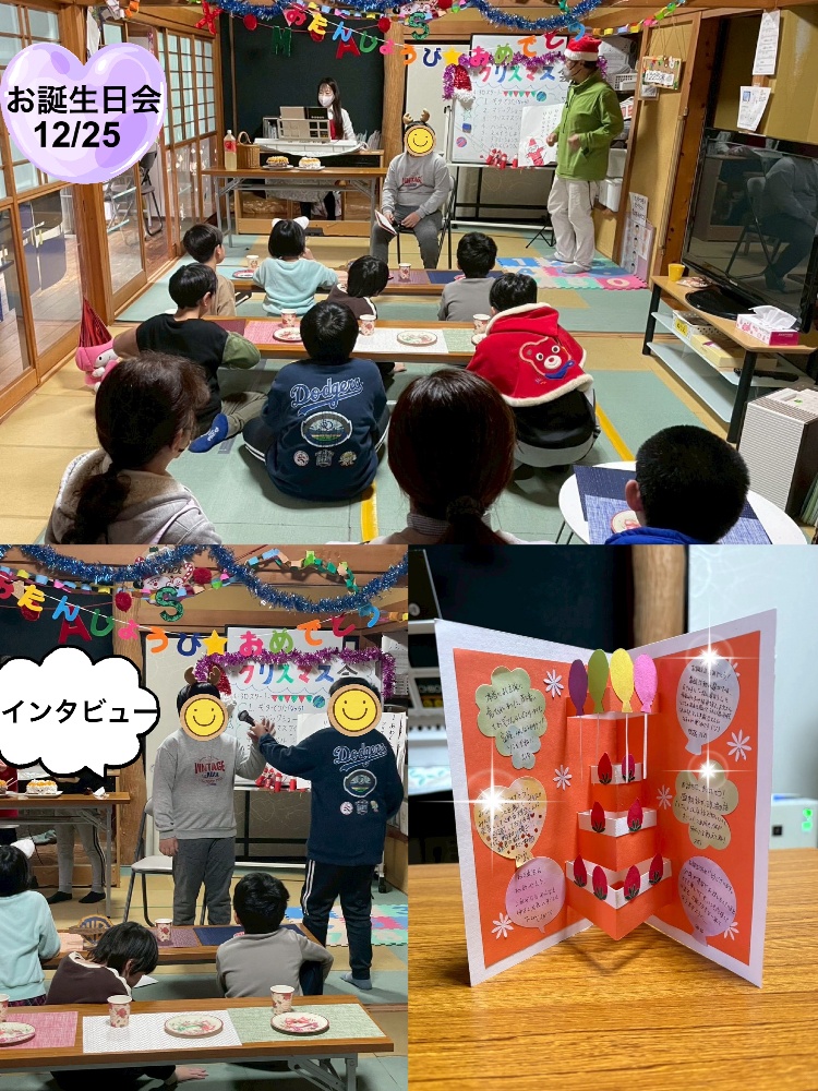 誕生日会のはじまりはじまり♡お友だちにカードをプレゼントしていただき、バースデーソングを歌い、インタビュータイム🎤