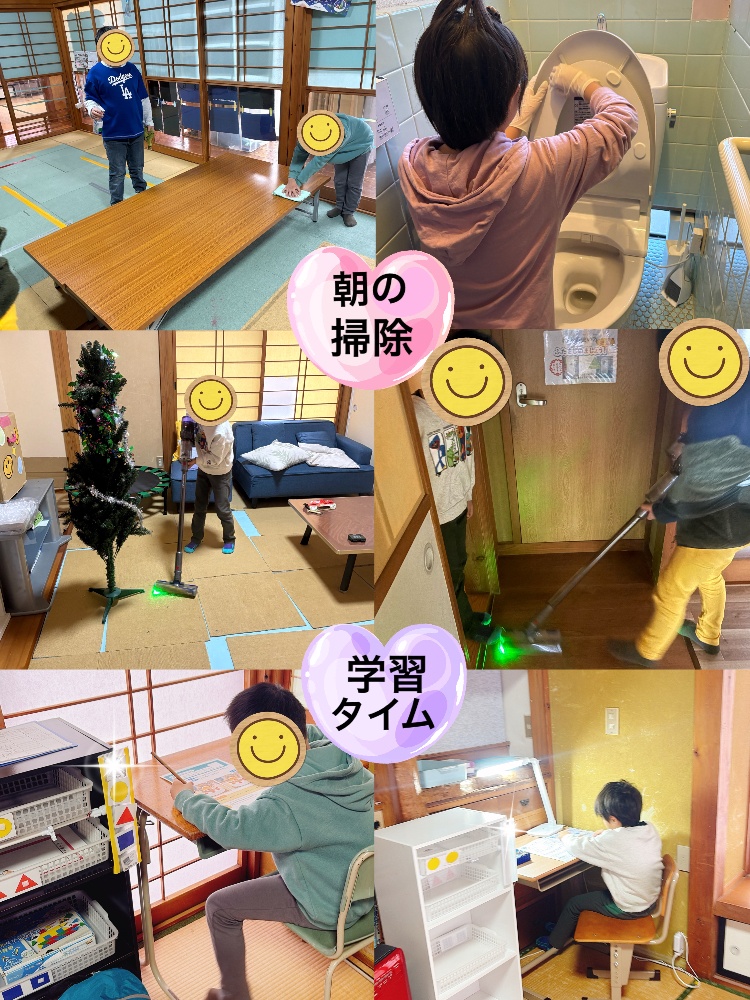 朝の会からはじまり、朝の掃除、学習タイム子どもたちは冬休みも元気いっぱいです😊